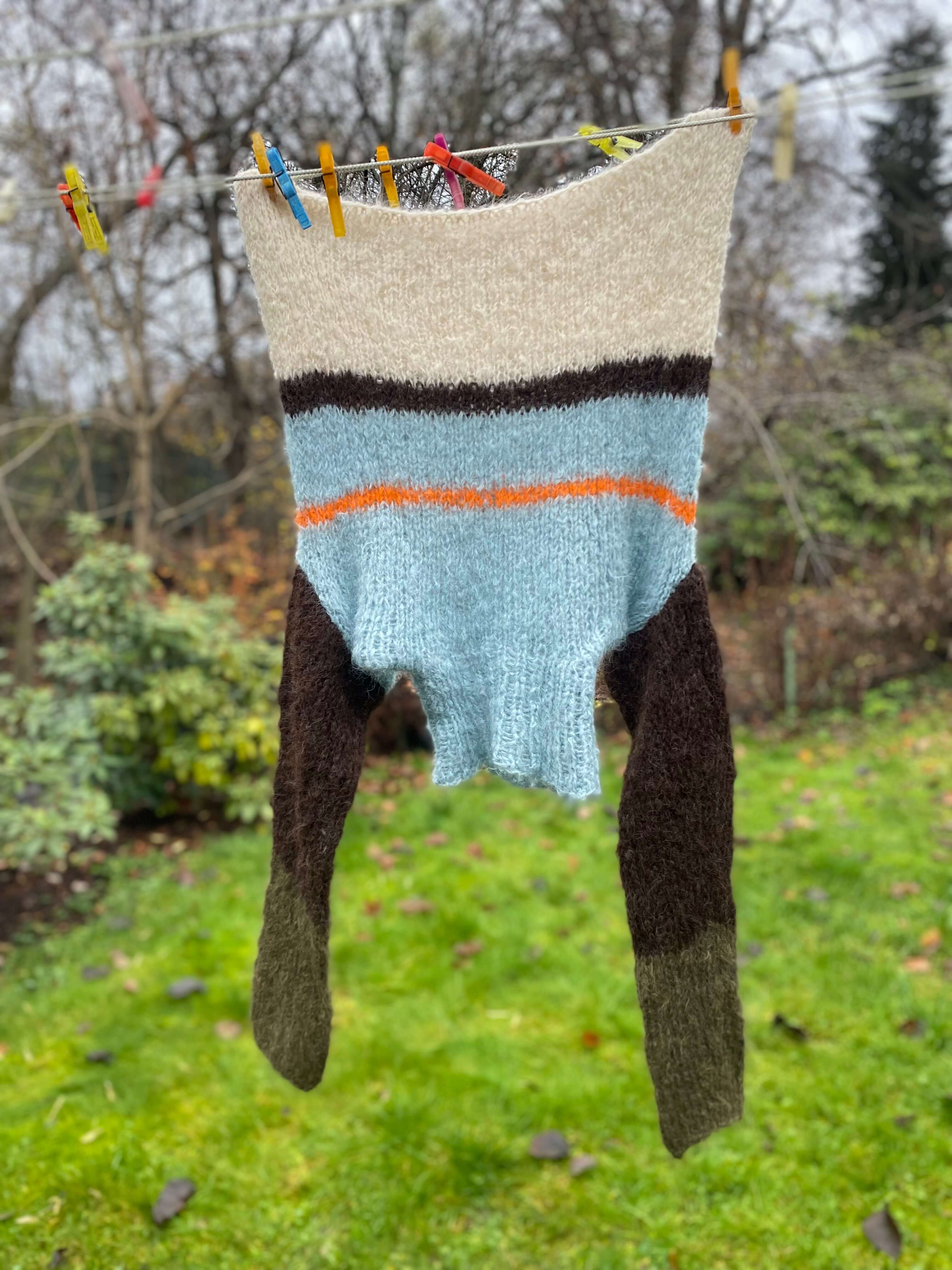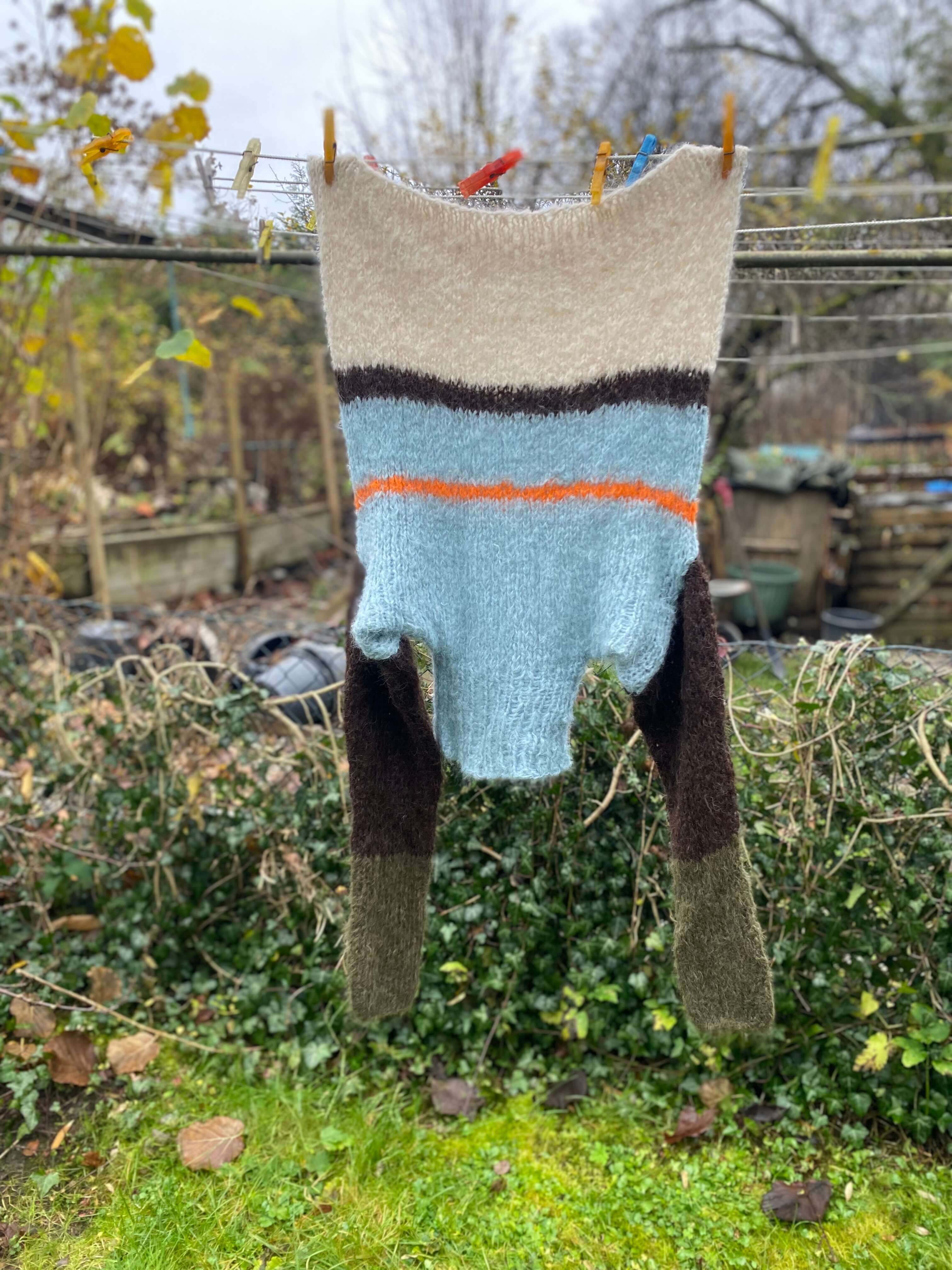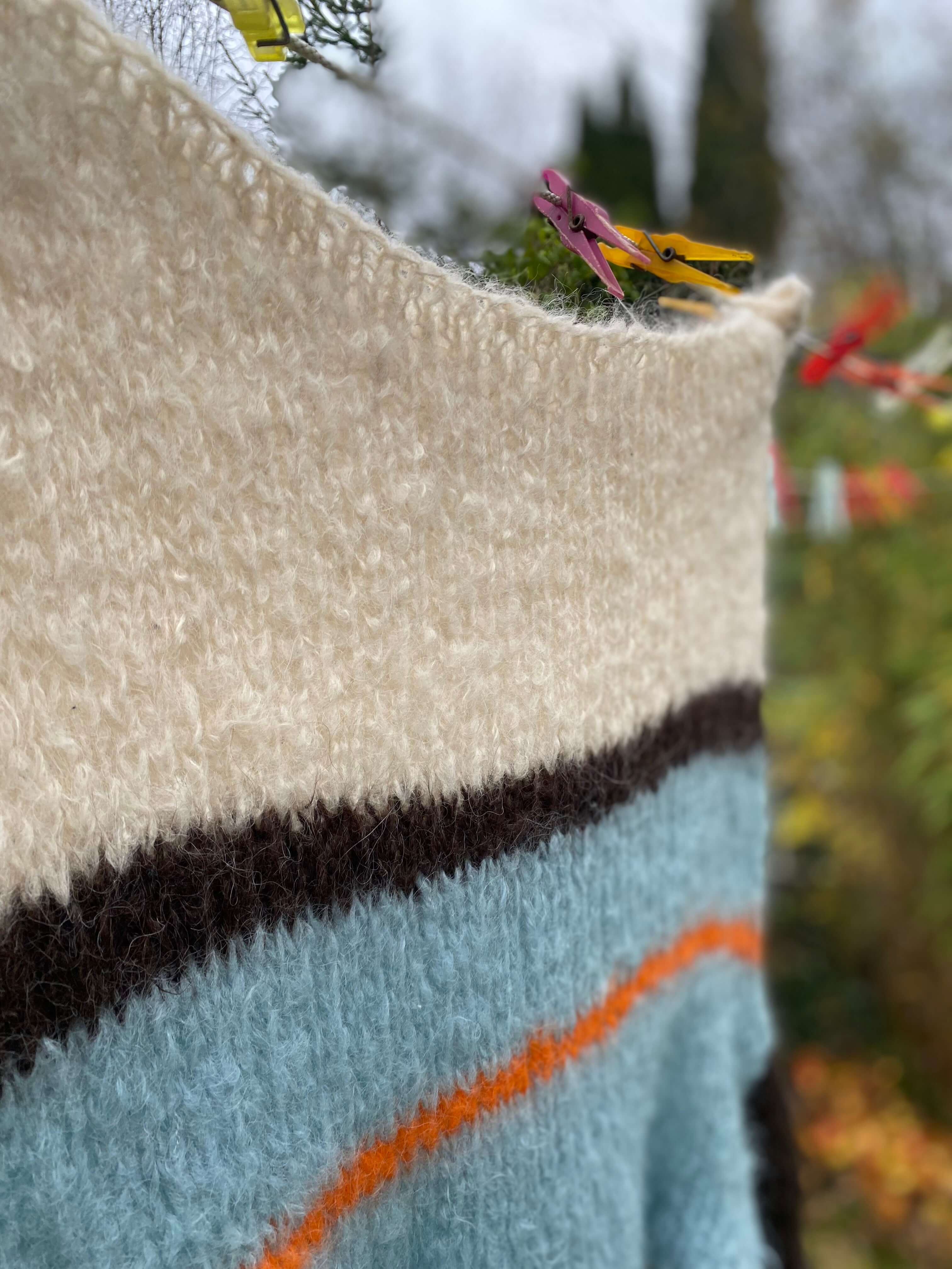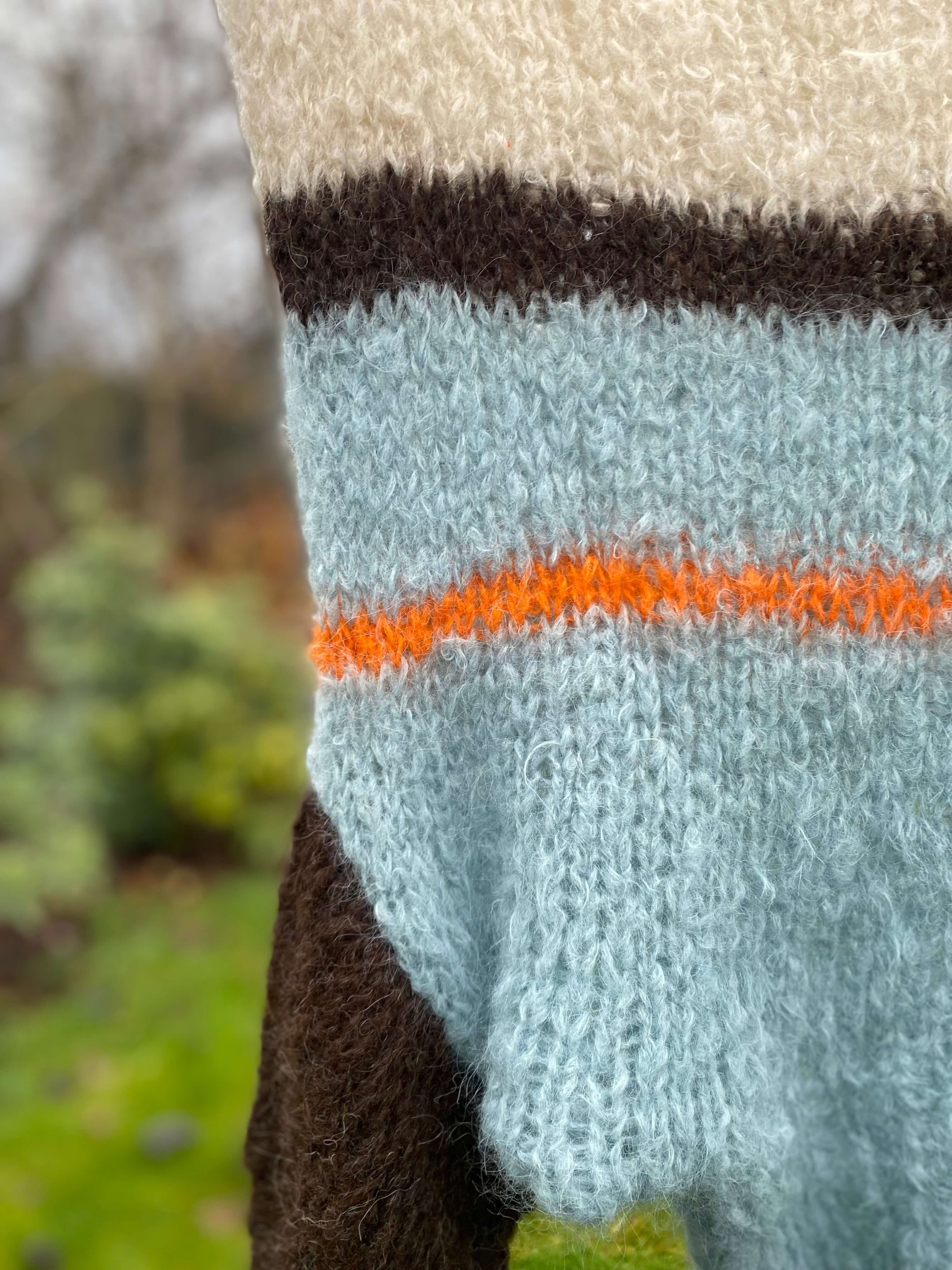 Strikket i Tjukk Mohair fra Rauma Ullvare (88 % mohair, 7 % ull, 5 % polyamid)
