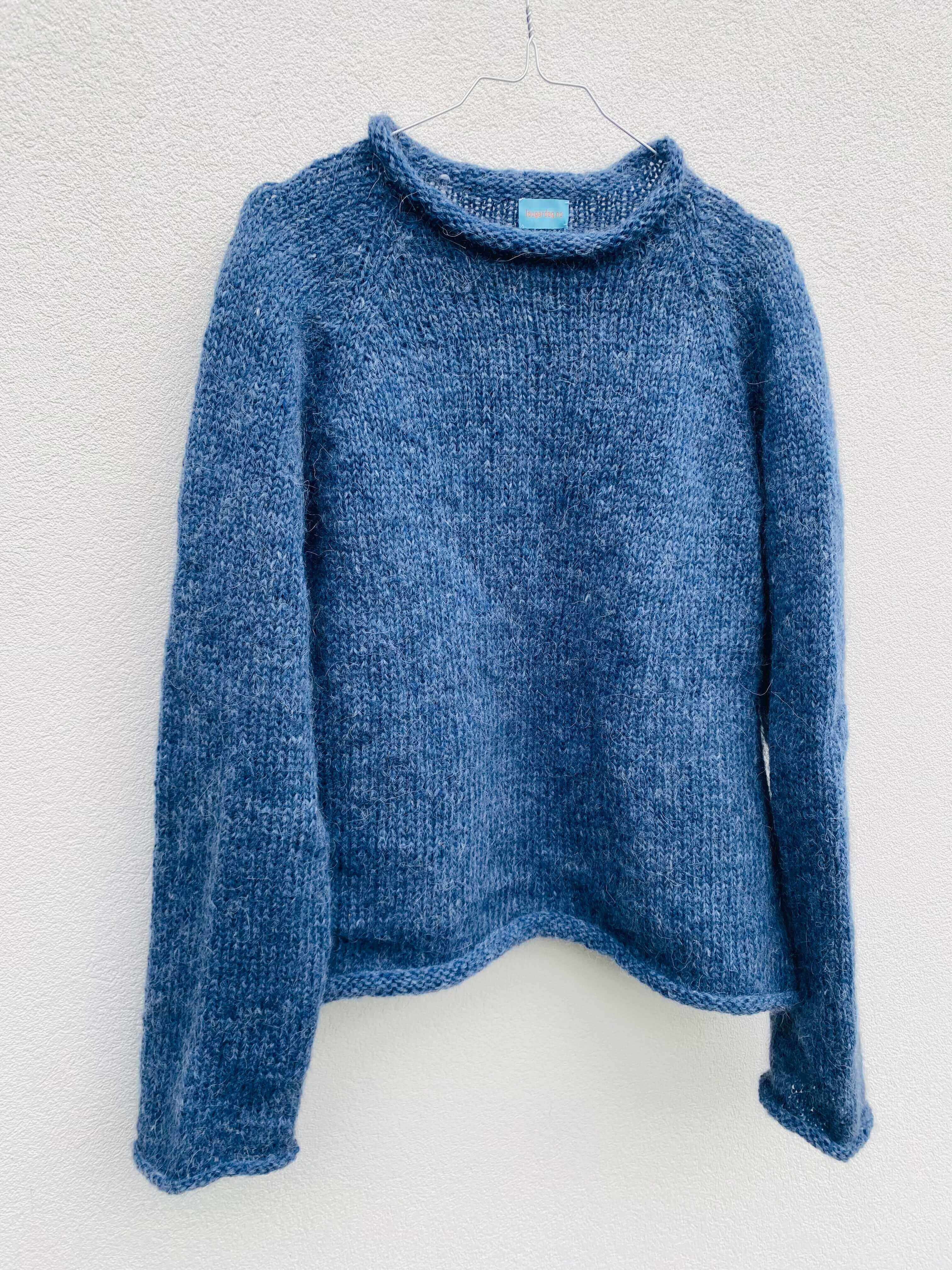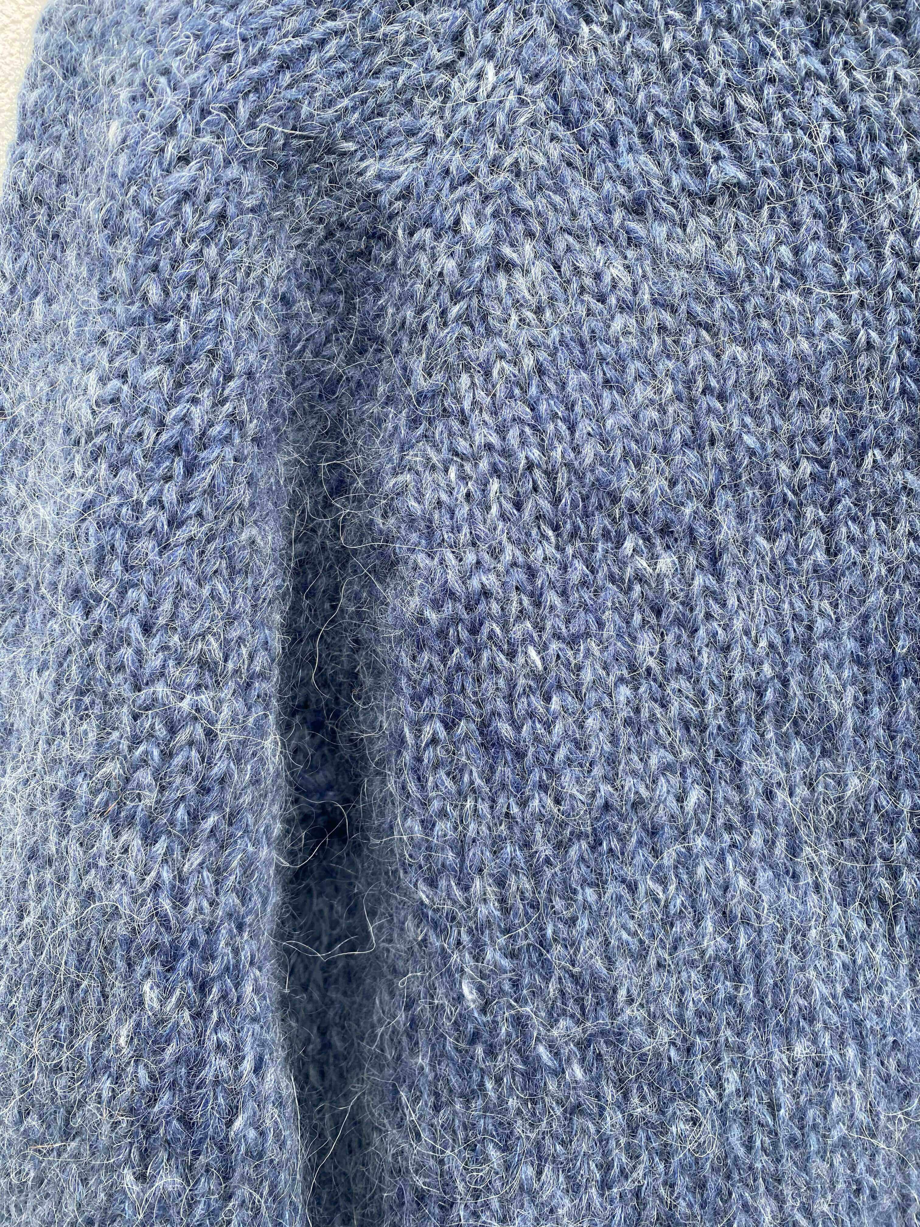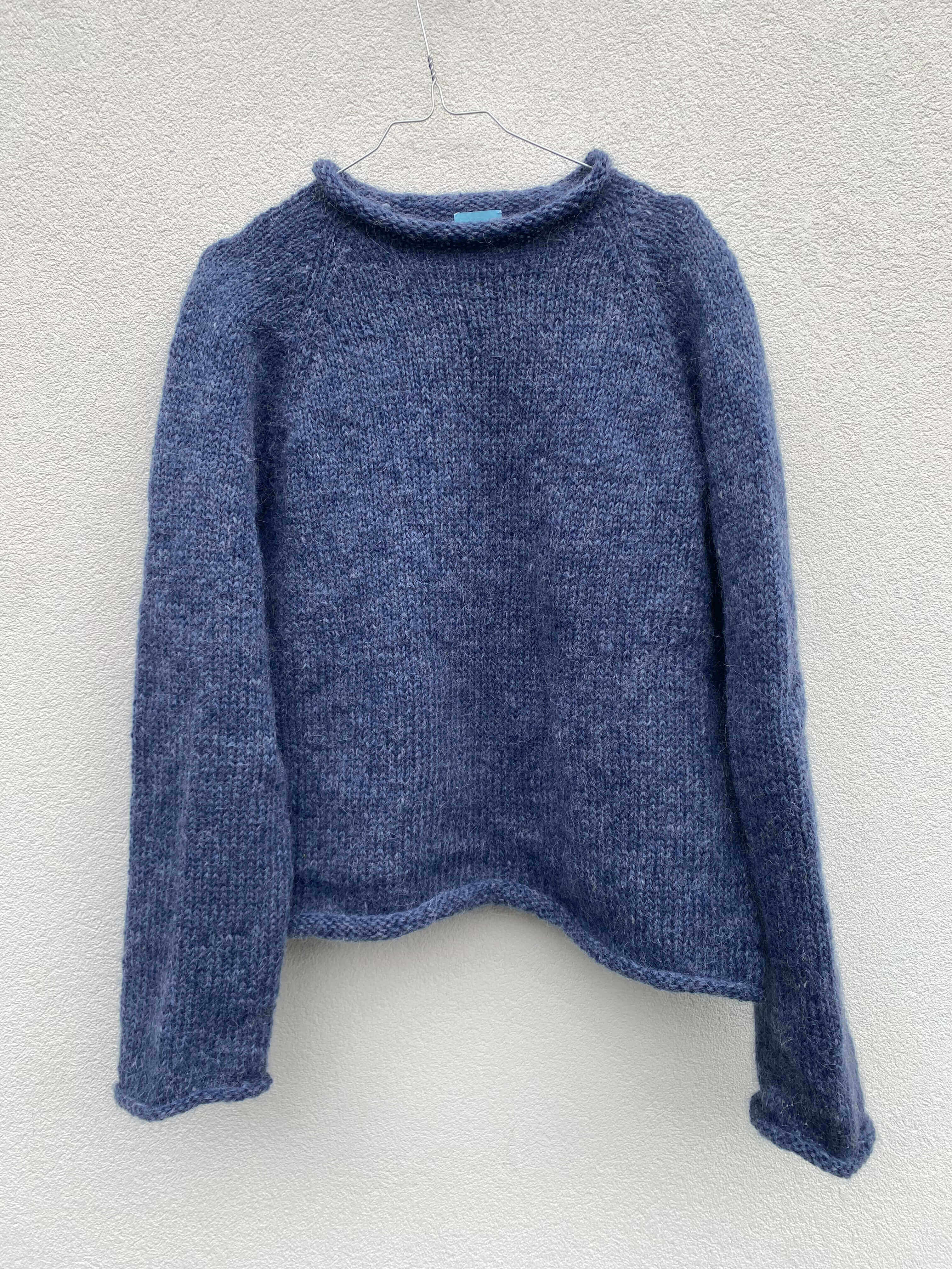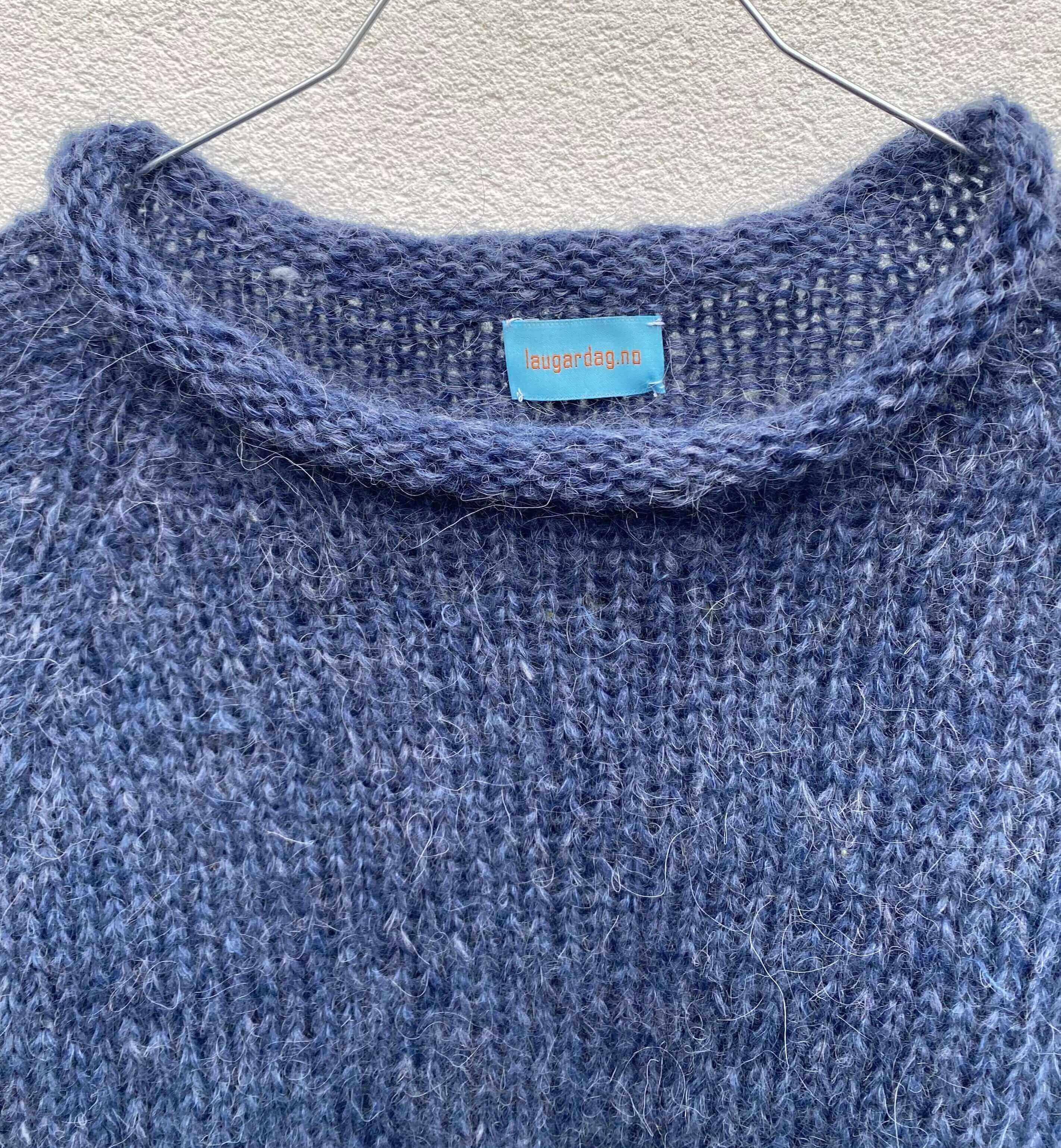 Genser i Plötulpi (100% uspunnet islandsk ull) Bæretråd i Plum fra Rauma (70% super kid mohair og 30% polyamid)