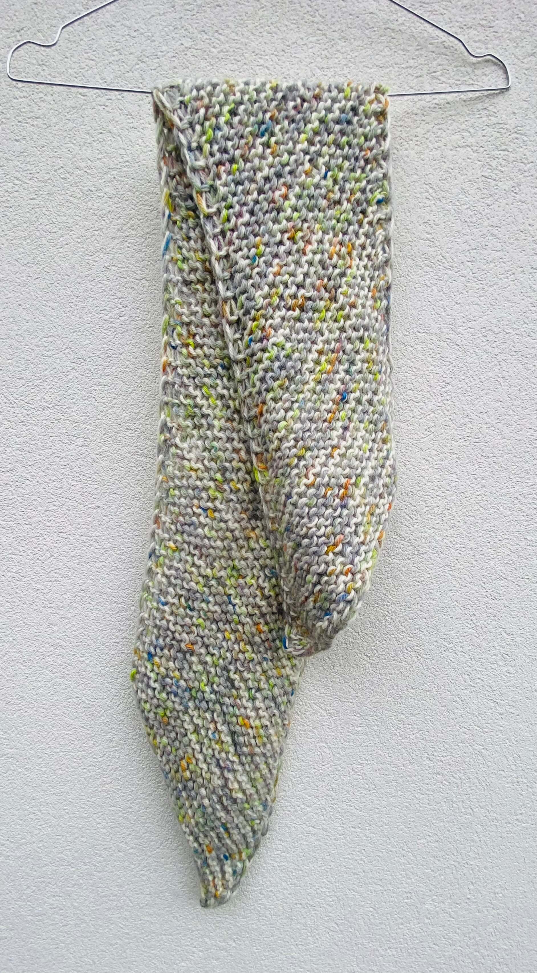 Håndfarget skjerf strikket på skrå. Spisse ender. Strikket i 100 % alpakka.