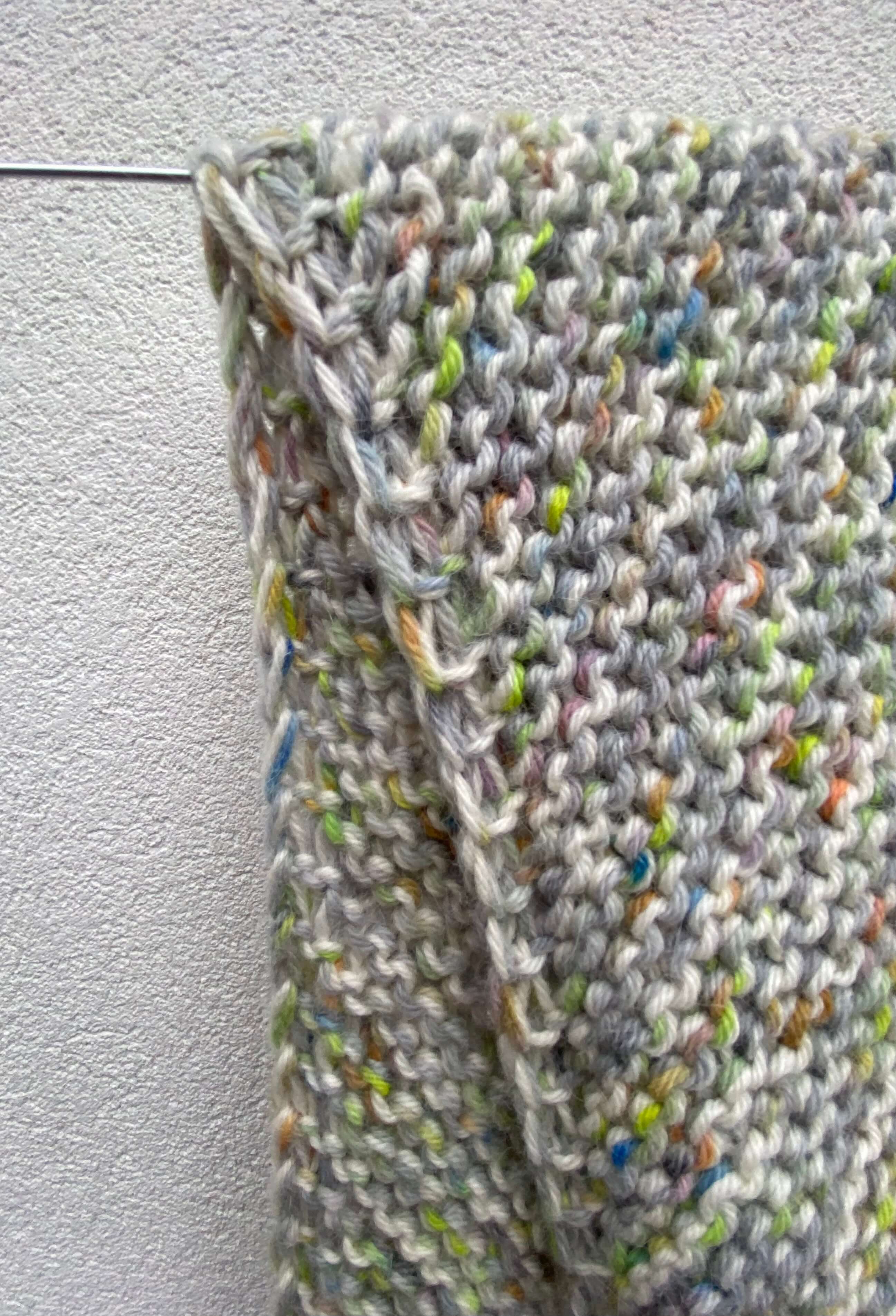 Fargekombinasjon: Melert i grått, hvitt, mosegrønt, rust og blått