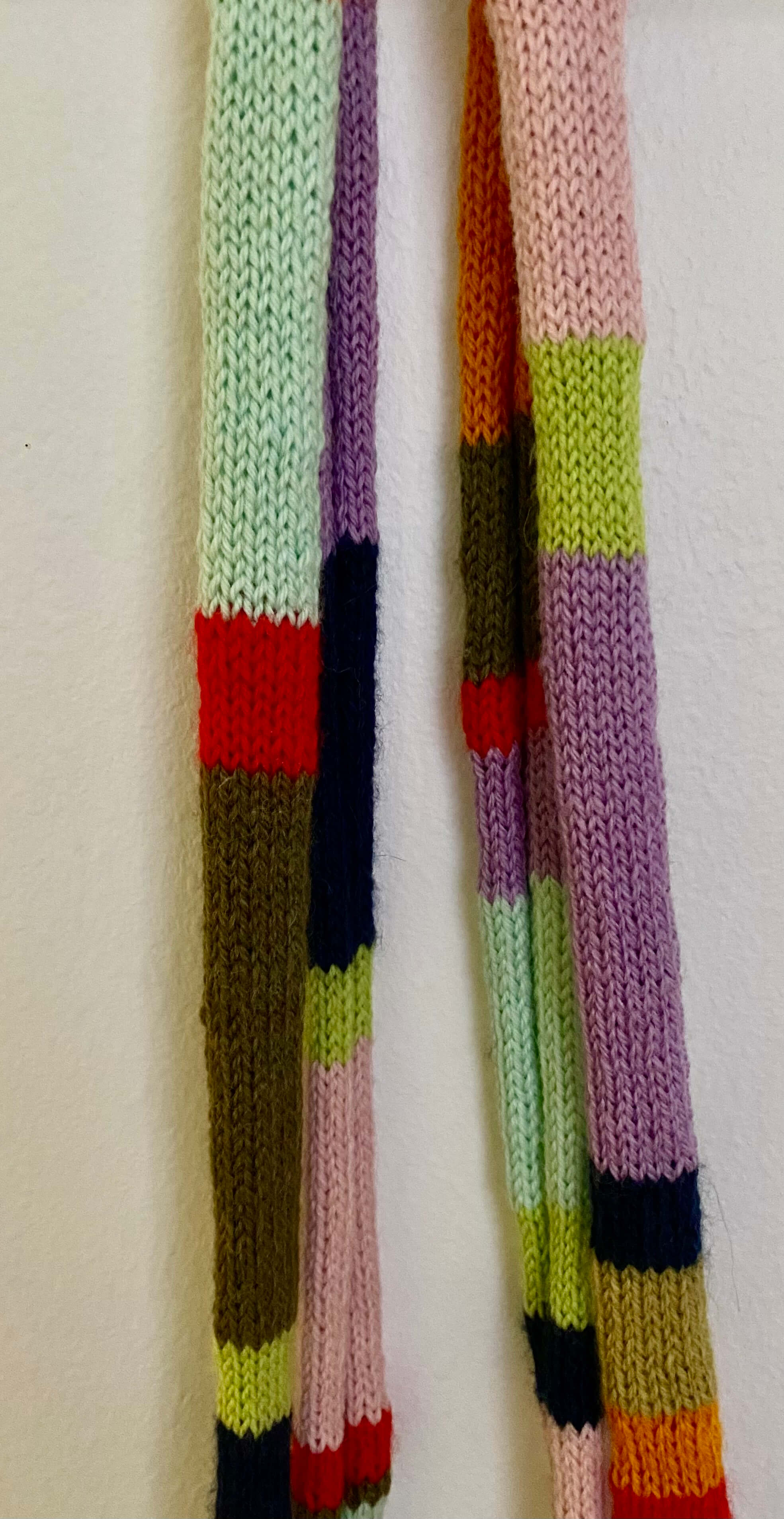 Strikket i Tumi fra Rauma Ullvare i en blanding av 50 % ull og 50 % alpakka Lengde: 250 cm Bredde (sett forfra): 3 cm